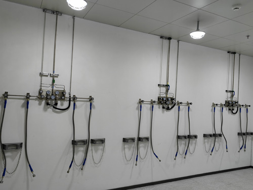 1.氣瓶間內壓力值調整開關按鈕與實驗英文室外的氣路終端門店相互并選擇SS316LBA管確定連入,管內外觀光澤度為Ra<0.4umBA級管。